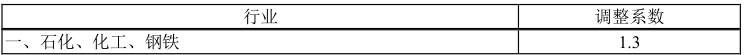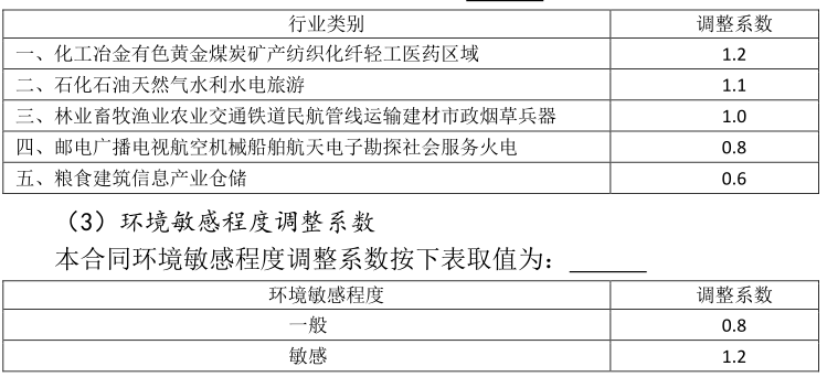 本合同行業(yè)調(diào)整系數(shù)按下表取值為: