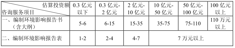 環(huán)境影響評(píng)估報(bào)告編制費(fèi)基價(jià)根據(jù)估算投資額在相對(duì)應(yīng)的區(qū)間內(nèi)用